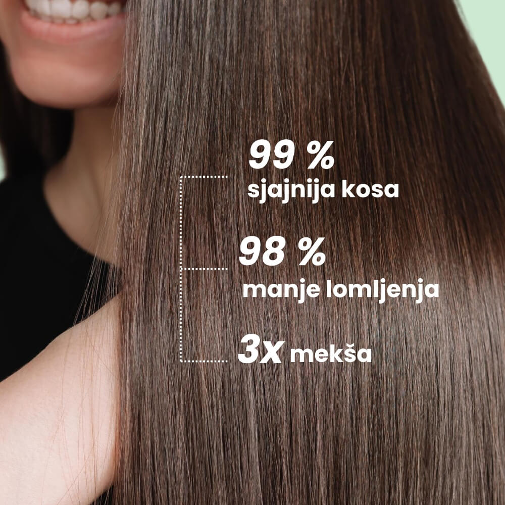 Ne, ako se koristi preporučena količina, kosa ostaje meka, sjajna i bez masnog osećaja.