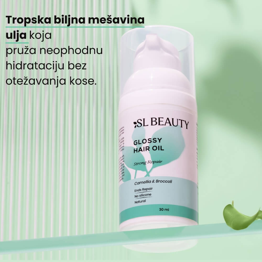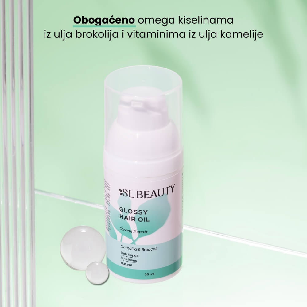 Ulje za sjajne krajeve kose formulisano je za svakodnevnu negu suvih, ispucalih ili beživotnih krajeva. Njegova lagana, nemasna tekstura trenutno se upija, bez osećaja težine, ostavljajući kosu svilenkastom, glatkom i sjajnom. Kombinacija ulja brokolija i kamelije deluje kao prirodna alternativa silikonu – obavija dlaku, štiti je od spoljašnjih uticaja i sprečava dalje isušivanje. Bogato omega masnim kiselinama, vitaminima i antioksidantima, ovo ulje vraća elastičnost, zaglađuje ispucale krajeve i daje glam završnicu koja traje ceo dan.