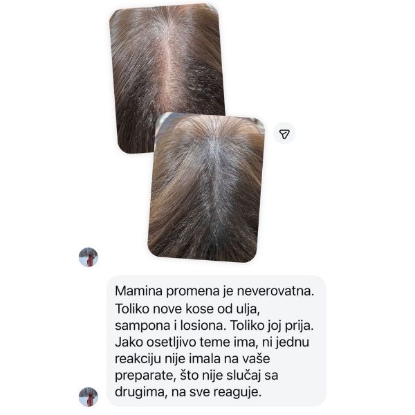Zato što je formulisan sa pažnjo, bez sastojaka koji isušuju i iritiraju, a uz visoke koncentracije biljnih ekstrakata i vitamina koji imaju dokazano deluju. Na osnovu stvarnih iskustava, upravo ova kombinacija čini razliku već nakon nekoliko nedelja. Set je posebno pogodan za osobe sa osetljivim temenom ili kosom sklonom opadanju i peruti.