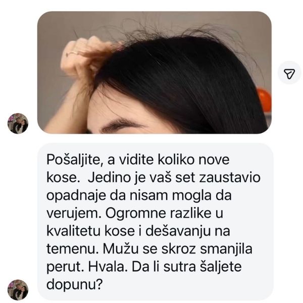 Set za rast i oporavak je moju kosu spasio i vratio u zivot. Moja kosa je bila suva, tanka i jako opadala sada vise nema ni peruti ni svraba, opadanje je prestalo a nova kosa samo raste🫶🏻